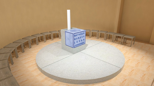 Nach Jahrzehnten wird das Taufbecken fachgerecht restauriert und an einem geeigneten Platz aufgestellt. Einweihung...