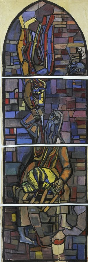 Martin Häusle, Abrahams Opfer, Original Entwurf auf Karton in der Größe der Fenster, 1958