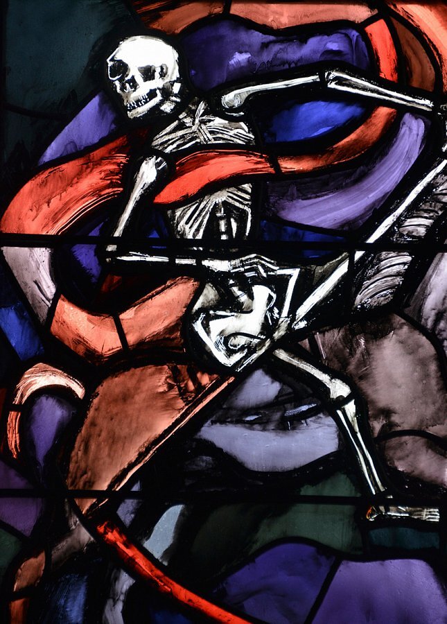 Feldkirch Levis, Maria, Königin des Friedens, Detail Tod aus Apokalypse, Martin Häusle 1964