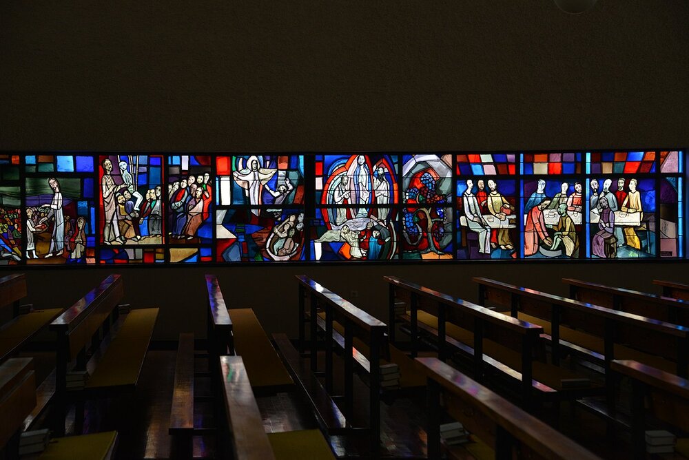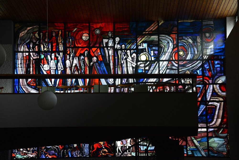 In der Taufkapelle Betonglasfenster mit Lebensbaum von Norbert Grebmer, 1962