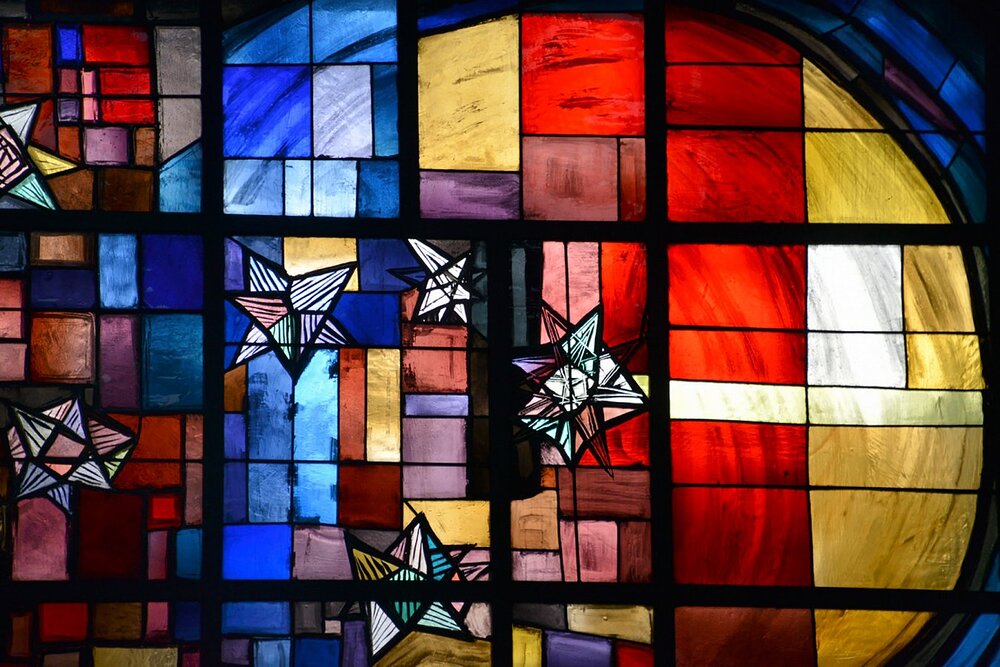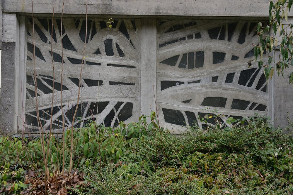 Feldkirch Levis, Maria, Königin des Friedens, Taufkapelle, Betonglasfenster mit Lebensbaum von Norbert Grebmer, 1962