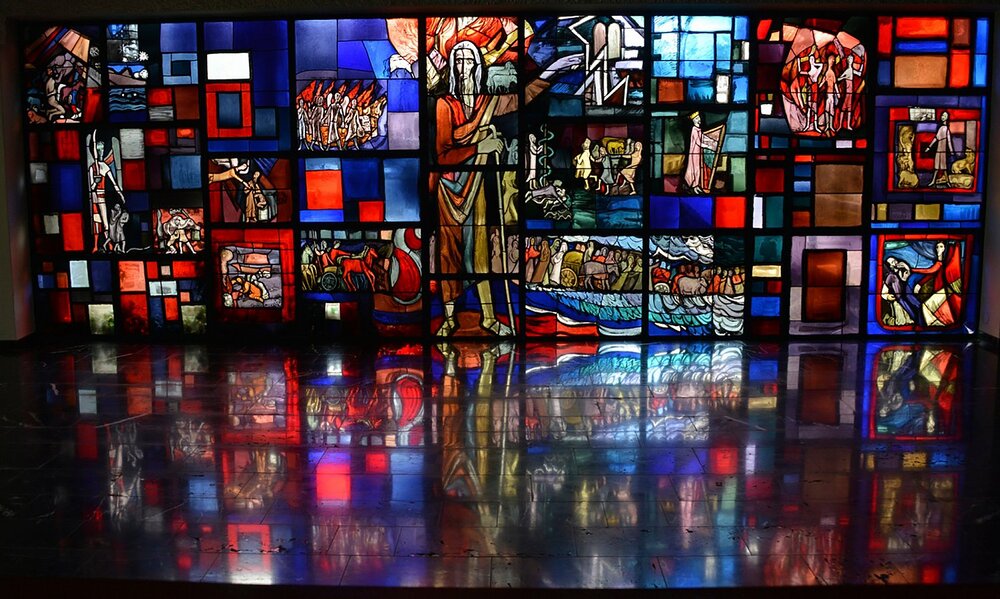 Feldkirch Levis, Maria, Königin des Friedens,Moses mit Szenen aus dem Alten Testament, Martin Häusle 1964