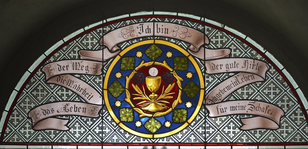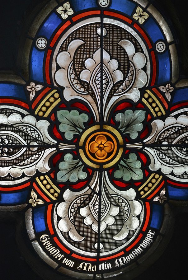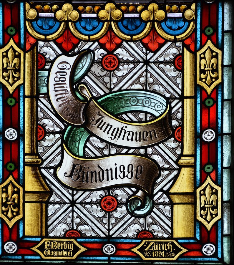 Glasfenster bez. F. Berbig Glasmalerei Zürich 1891, nach Entwurf von Martin Feuerstein: