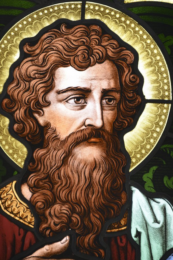 Riezlern, Mariä Opferung,Kopf von Sankt Mathias, Entwurf Martin Feuerstein 1891, Ausführung F. Berbig Glasmalerei Zürich