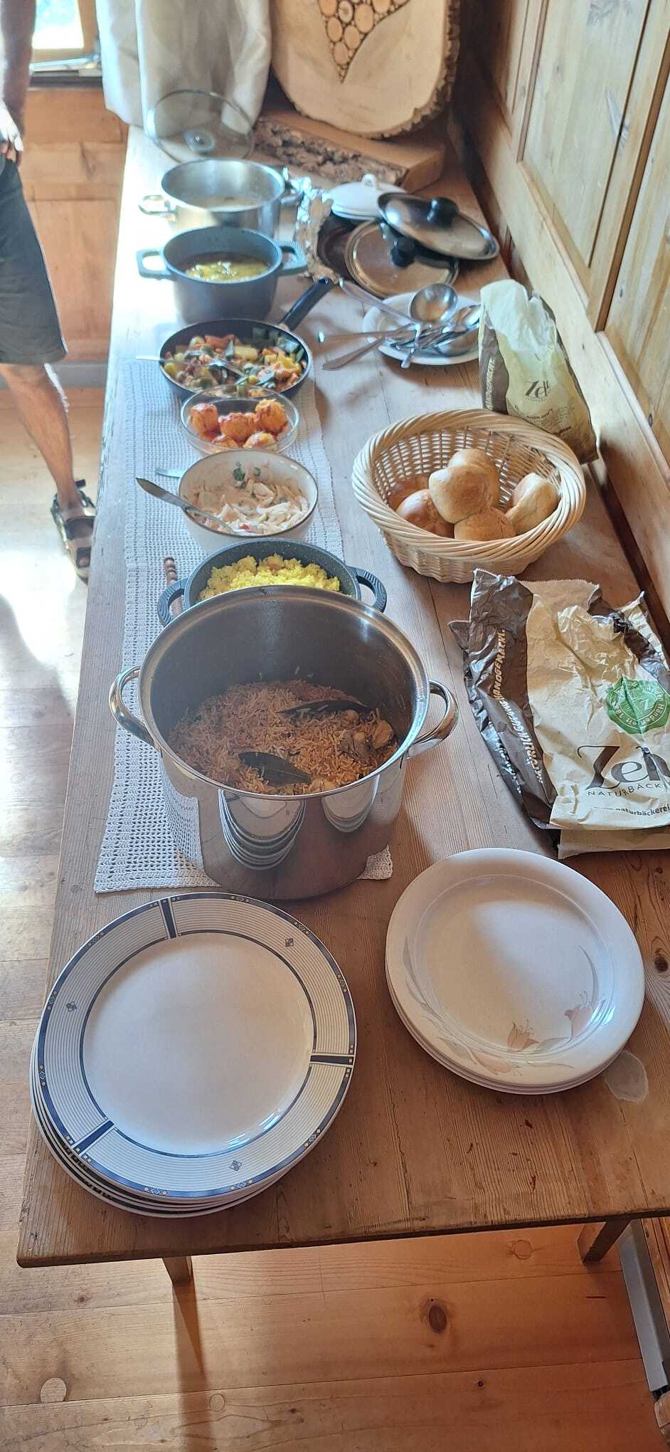 Unser Kaplan Albert hat die hauptamtlichen Mitarbeiter vom Haus der Kirche zum indischen Mittagessen eingeladen. Die von ihm selbst mit viel Liebe zubereiteten indischen Speisen wurden als Buffett aufgetischt und der Mittagstisch schön hergerichtet.