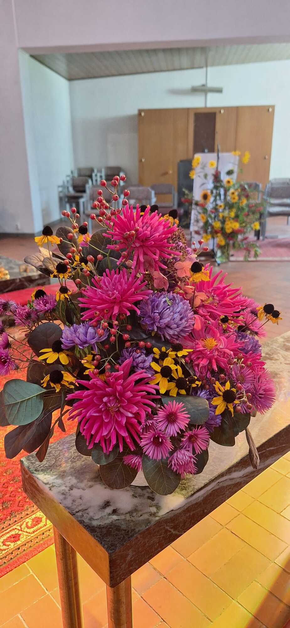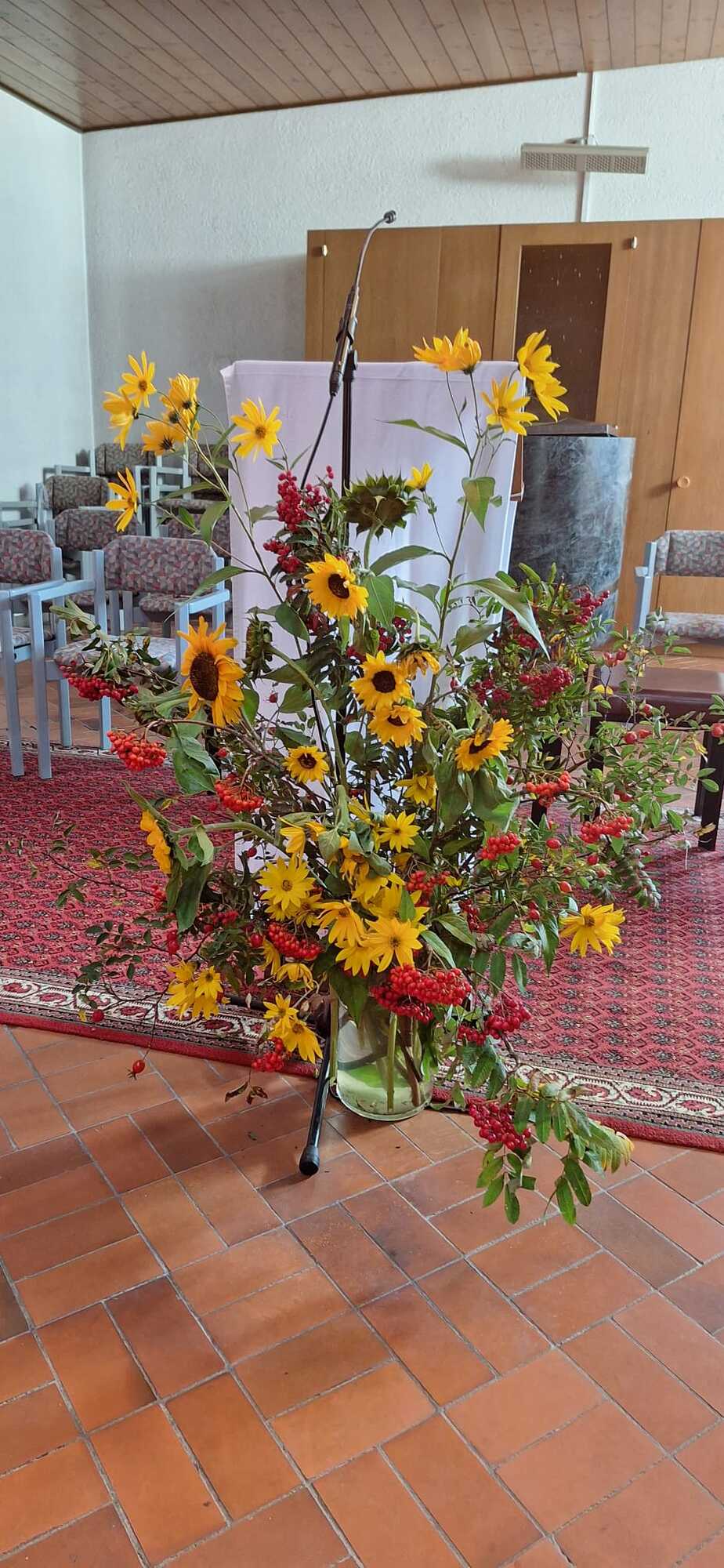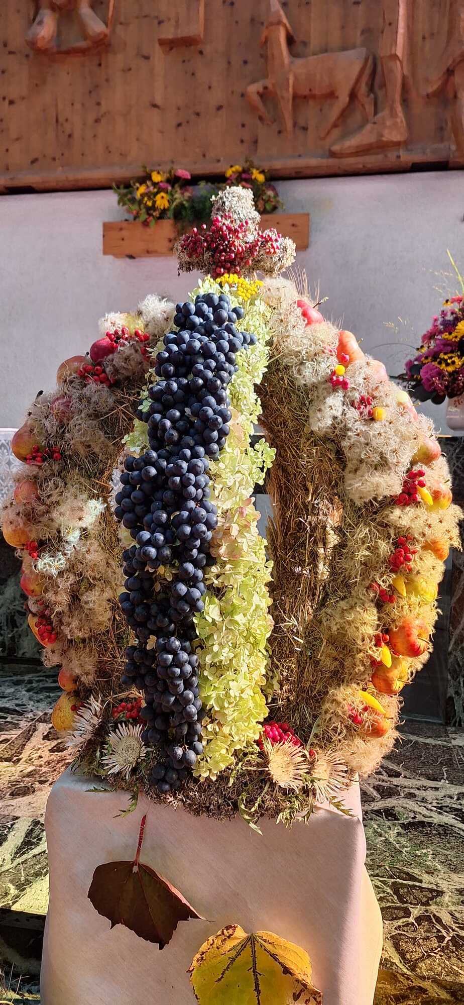 Bei der gut besuchten Messe wurden die vielen mitgebrachten Erntedankkörbe gesegnet. Zum Vater unser hat Pfarrer Hans die vielen Kinder zum Altar gebeten und der Kirchenchor Vandans hat den Gottesdienst musikalisch mitgestaltet. Die Kirche wurde vom Obst- und Gartenbauverein festlich geschmückt und hat anschließend an die Messe bei herrlichem Wetter zur Agapé mit Wein, Süßmost und süßem sowie pikantem Gebäck auf dem Kirchplatz eingeladen.