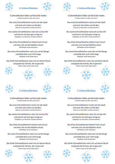 Fingerspiel - 5 Schneeflocken A6